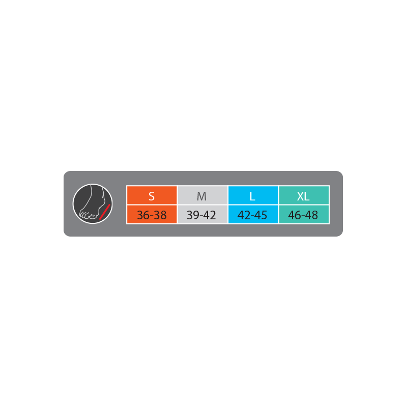 Ohjeet: Pujota jalkaterä sukan sisään ja vedä sukka jalkaan kantapään ylitse käyttäen apuna sukan taka-osassa olevia lenkkejä. Sukkia voidaan käyttää molemmissa jaloissa, niitä ei ole muotoiltu oikean ja vasemman jalan mukaan.